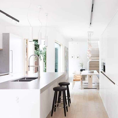embraced by homeowners en masse. A kitchen styled in a contemporary fashion incorporates