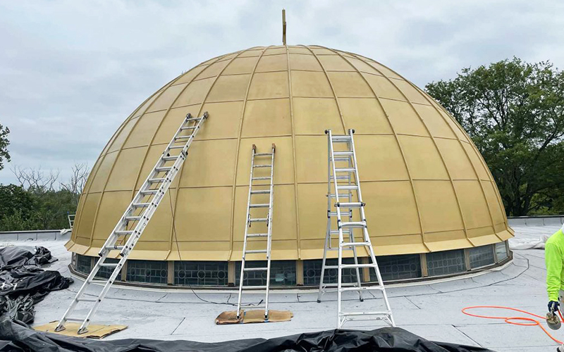 The project at Saints Peter and Paul Greek Orthodox Church was the rehabilitation of its central icon: a 40-foot diameter gold dome, patterned after ancient Byzantine churches.